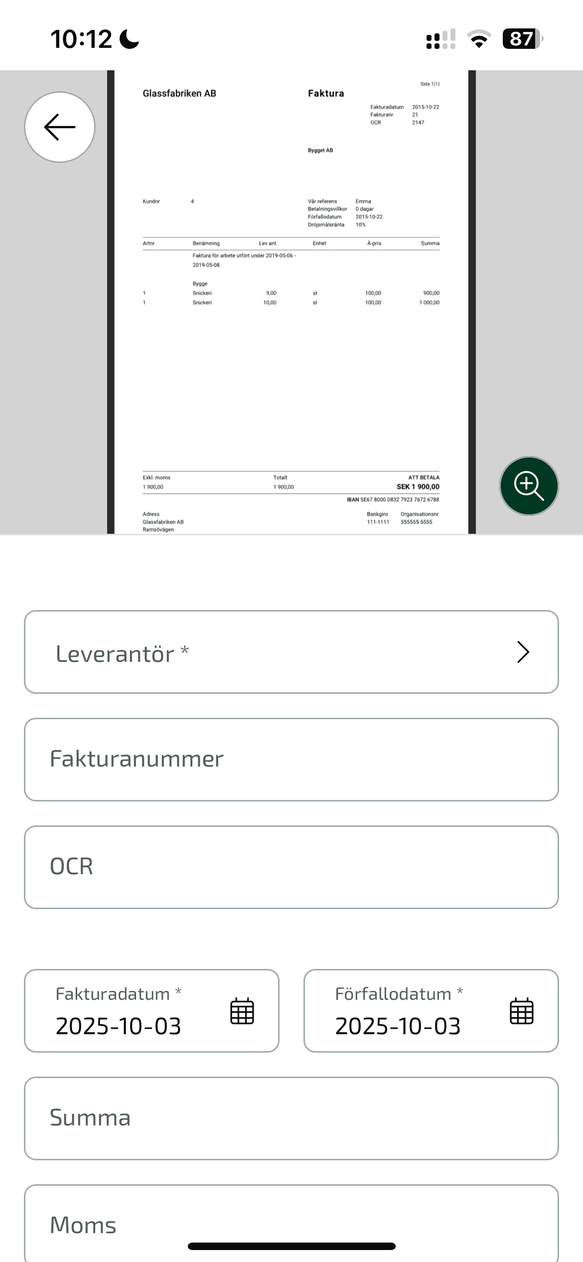 Fortnox app gör det enkelt att hantera dina leverantörsfakturor direkt i mobilen. Du kan välja att låta Fortnox tolka fakturan automatiskt eller registrera den manuellt.
