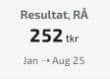 Beskrivning: Visar resultatet senaste 12 månaderna fram till och med månaden innan sista bokförda intäkten, ej längre fram än idag. Den senaste månaden med intäkter antas vara pågående och eventuellt inte komplett, för att visa ett mer korrekt resultat är denna månad undantagen.