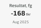 Beskrivning: Det är intäkter (både nettoomsättning och övriga intäkter) minus kostnader, visar resultatet för månaden med sista bokförda intäkten eller banktansaktionen, ej längre fram än idag.