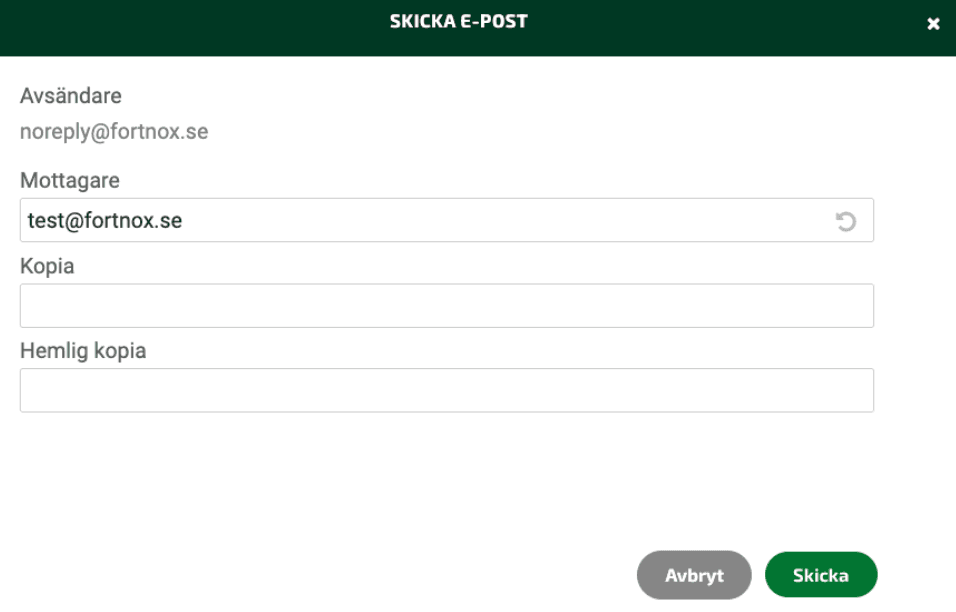 Efter att du valt alternativet Bokför & skicka till fler får du upp en ny ruta, här fyller du i E-postadressen du önskar att skicka en kopia till.