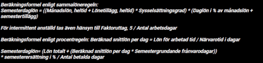 Semesterberäkning - Förklaringar och uträkningar vid Sammalöneregeln