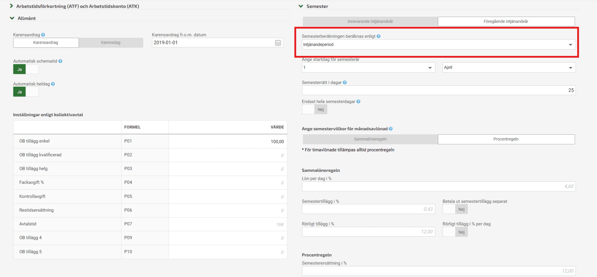 Har du endast gjort ett semesterårsavslut men vill ha den nya inställningen så behöver du backa semesterårsavslutet och göra det på nytt. Läs mer här: Backa semesterårsavslut